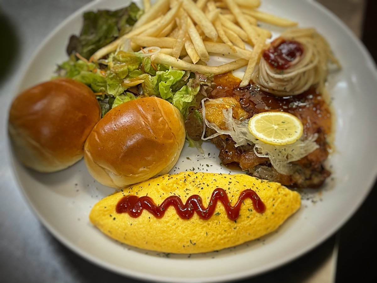 オムレツのったチキンレモンのワンプレート!いろいろ乗ってたのしーわさだのメニュー\(//∇//)\