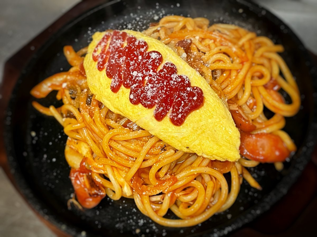 太麺!鉄板!オムレツ乗ったナポリタンは属性てんこ盛り!わさだの人気メニューです!\(//∇//)\