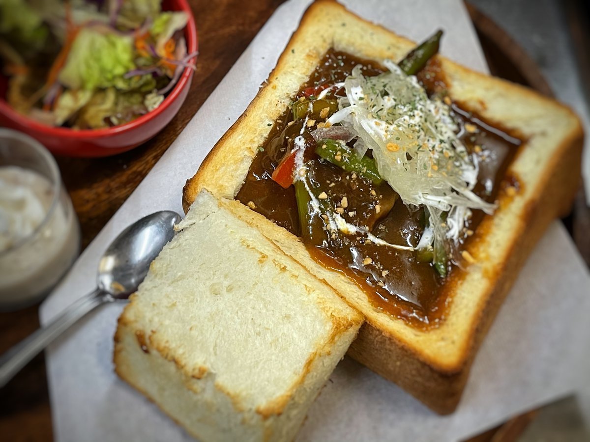 ビーフシチューをパンくり抜いて入れちゃったビーフシチュートーストはわさだのメニュー\(//∇//)\