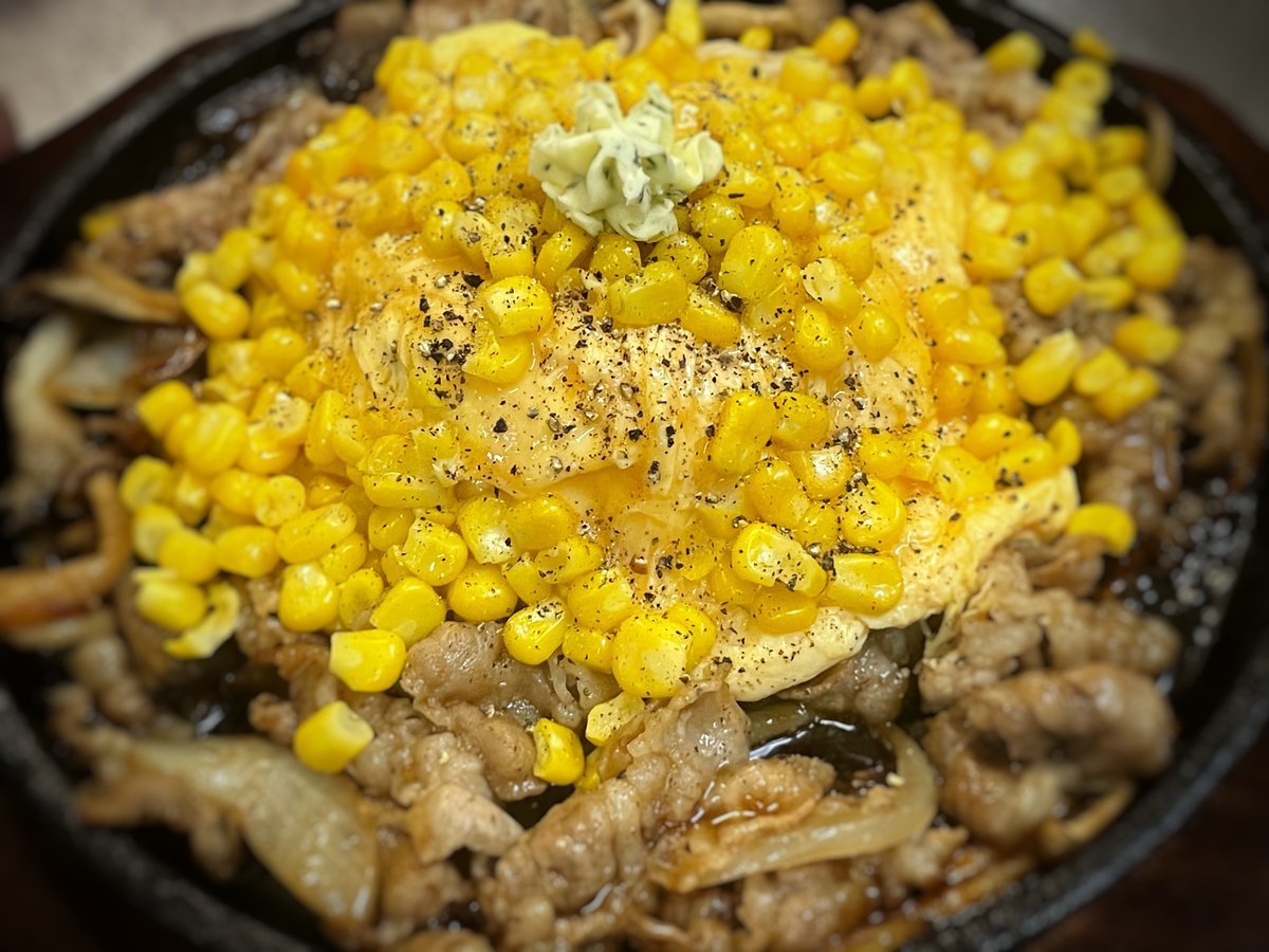 コーンたっぷり!ビーフペッパーオムライスはわさだの熱々鉄板オムライス\(//∇//)\