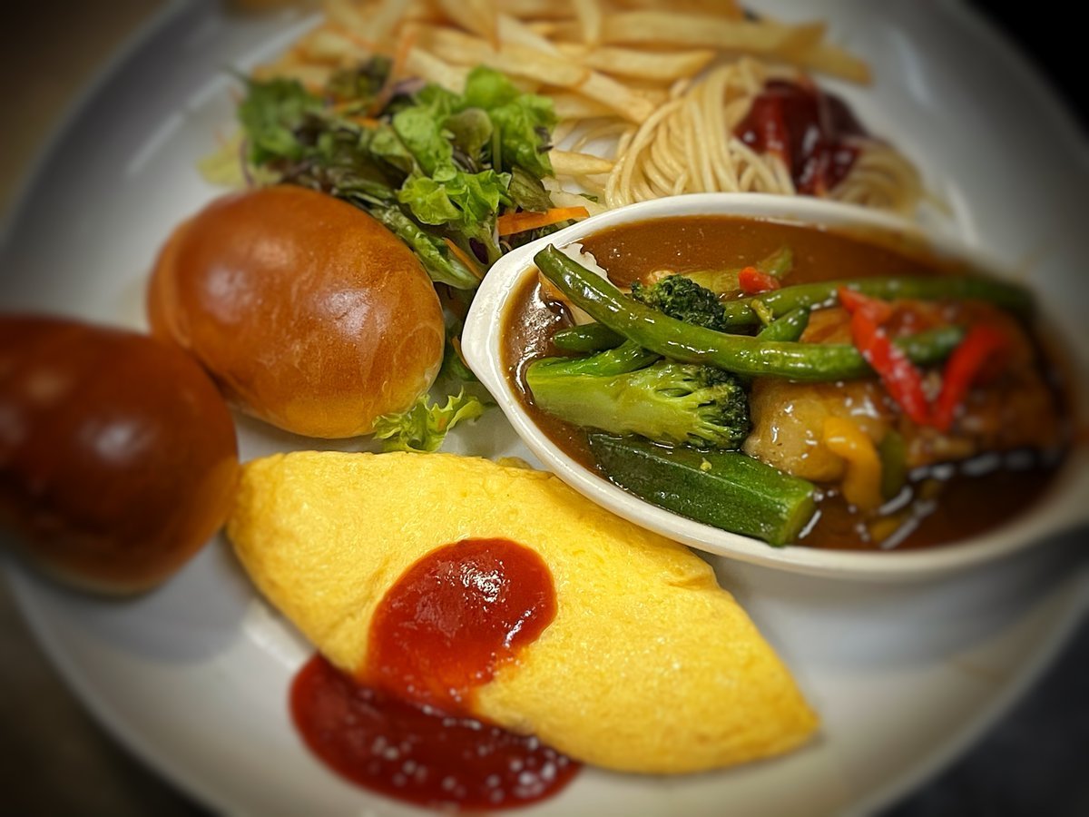 オムレツとビーフシチューとパンのった楽しいーワンプレートはわさだのメニュー!\(//∇//)\