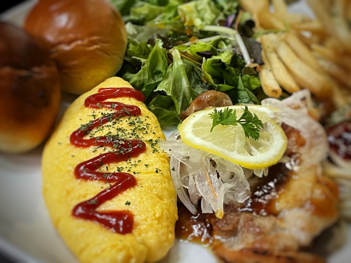 オムレツにチキンレモンにパンのワンプレートはわさだの人気メニュー\(//∇//)\