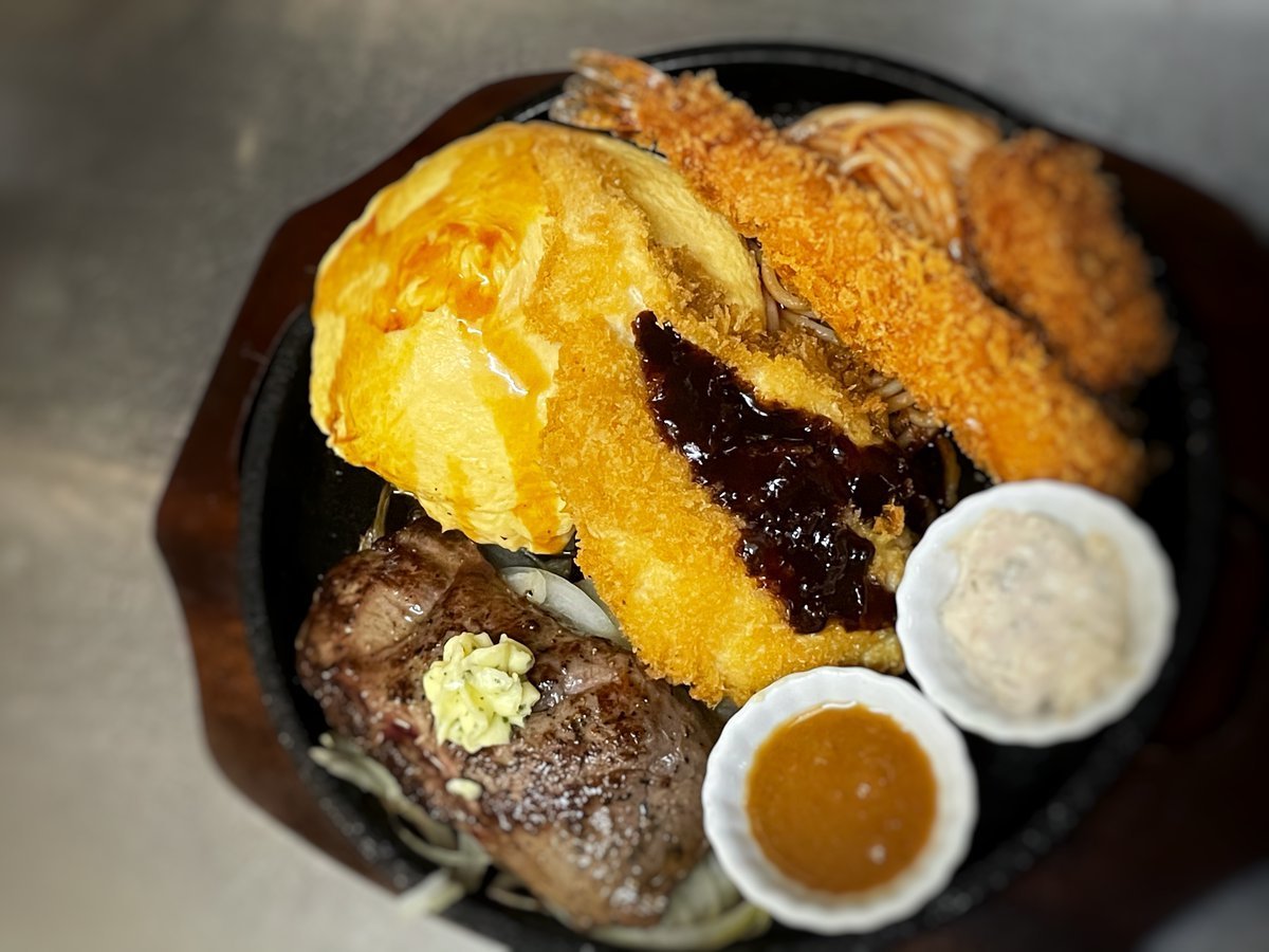 大人のお子様ランチはいろいろ鉄板に乗ってるテンションあがるわさだのオムライス\(//∇//)\