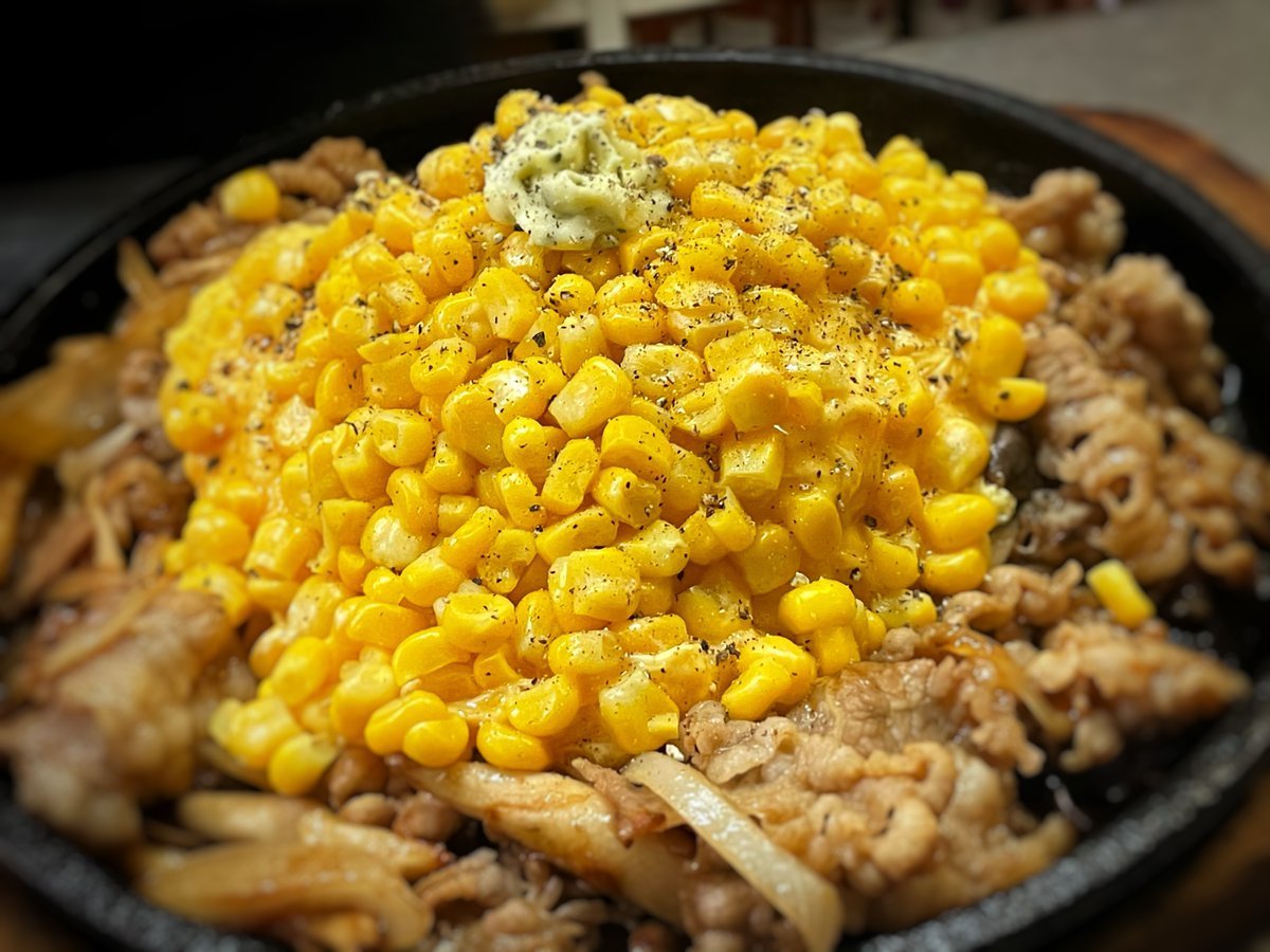 コーンたっぷり!ビーフペッパーオムライスはわさだのガッツリ系鉄板オムライス\(//∇//)\