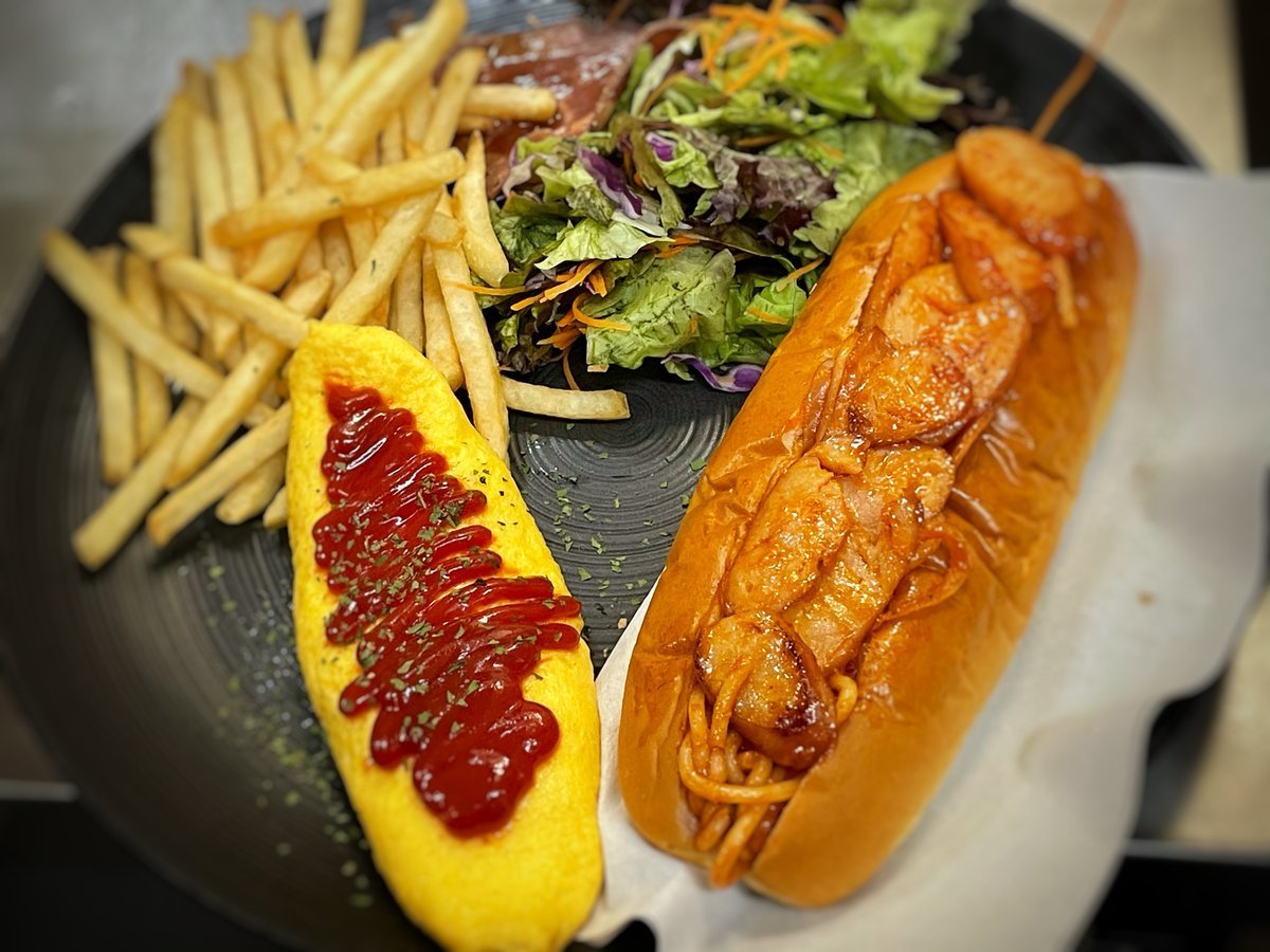 ナポリタン挟んだホットドックプレート!なんだか懐かしくなるわさだの新メニューです!\(//∇//)\