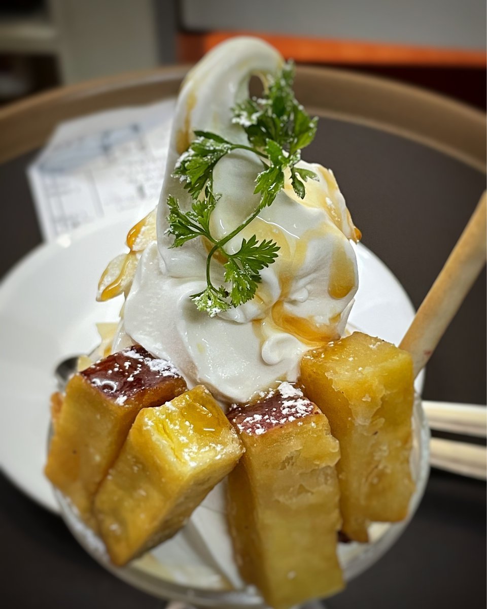 スイートポテトのパフェは地味な見た目なのにめちゃ大人気です!おいもさんかわいいです!\(//∇//)\