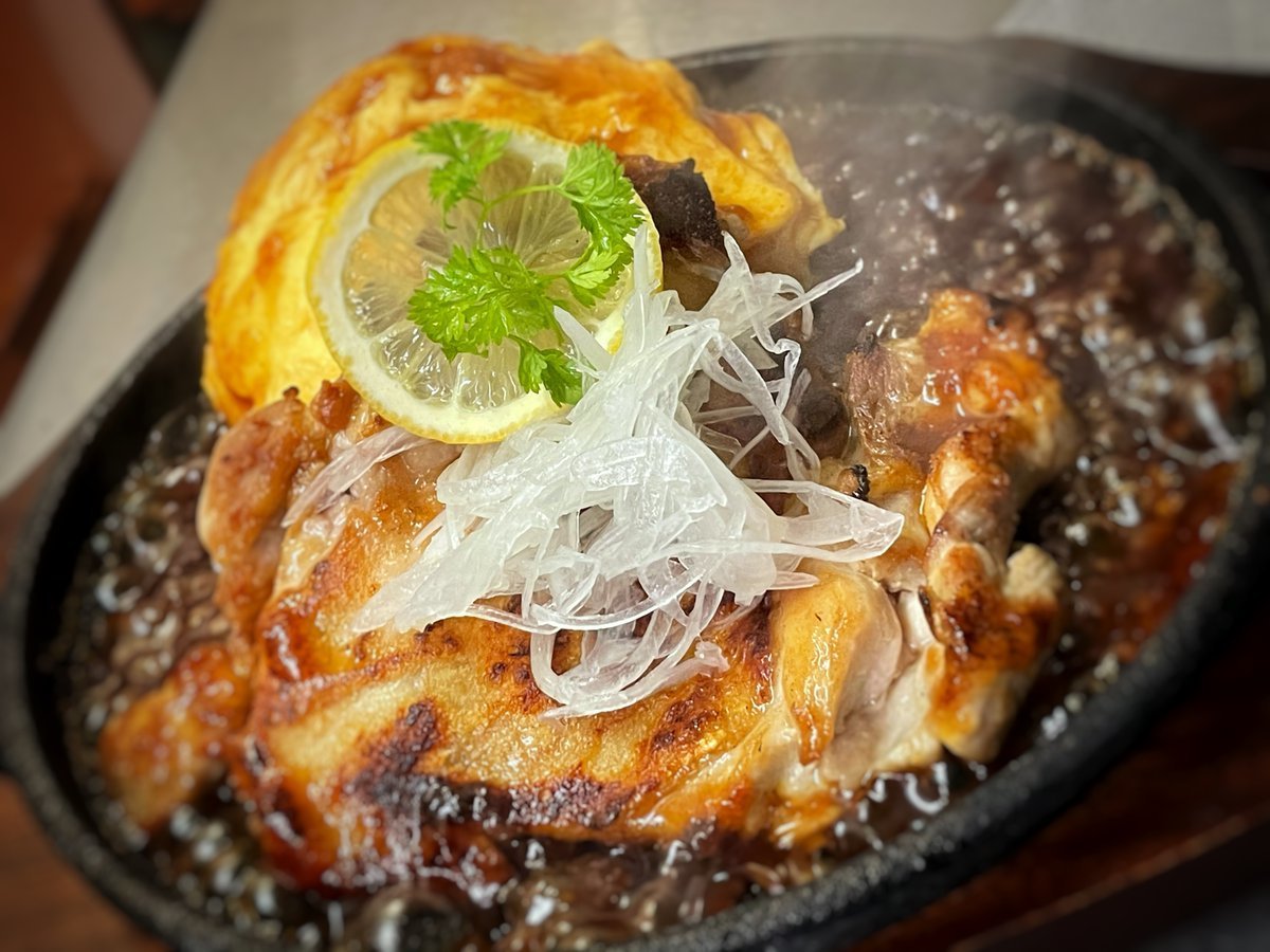 チキンレモンステーキのは爽やかなレモンの香りがおいしーわさだの鉄板オムライス\(//∇//)\