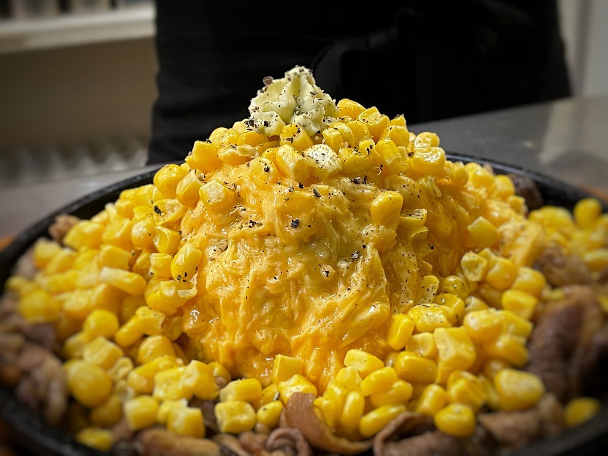 コーンたっぷり!ビーフペッパーオムライスは熱々鉄板ガッツリ系わさだのオムライス\(//∇//)\