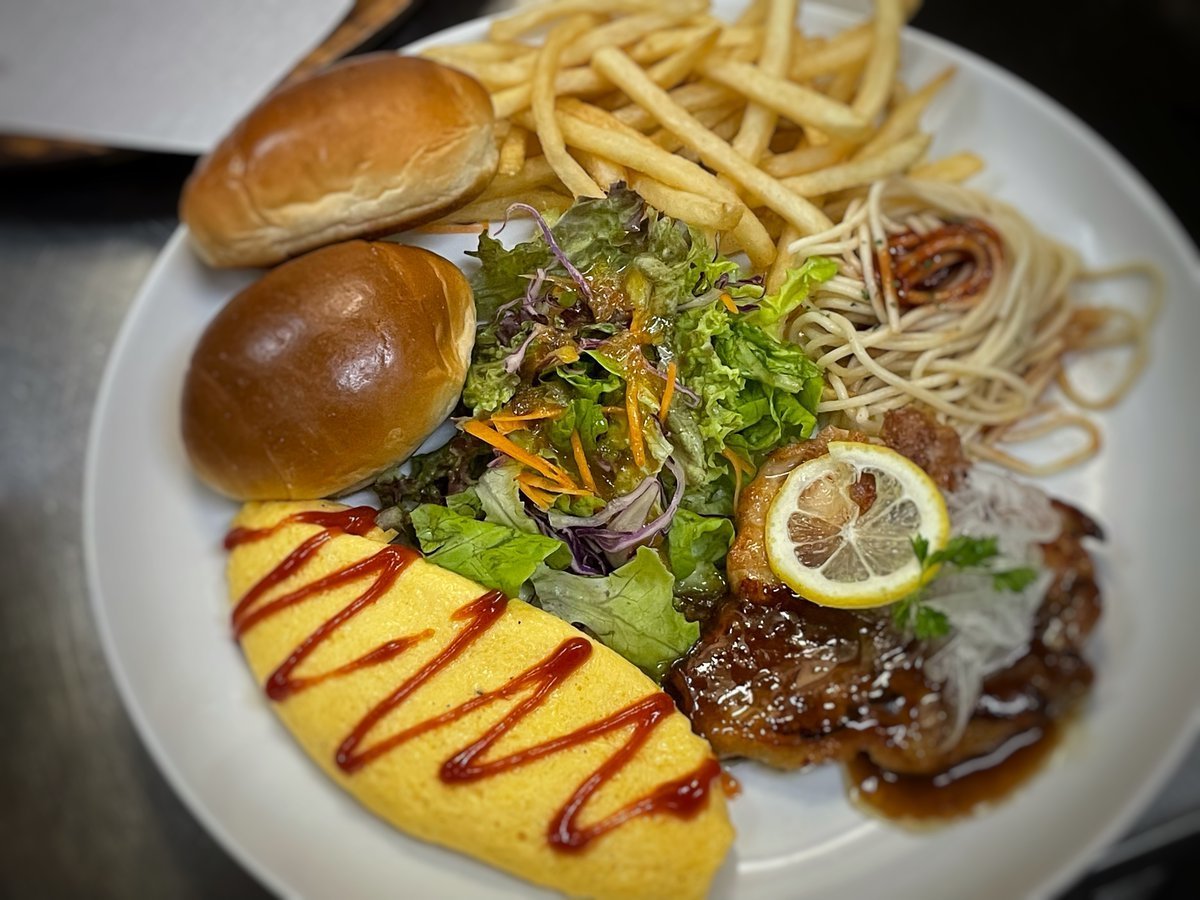 オムレツにチキンレモンにいろいろ乗ったたのしーワンプレートはわさだのメニュー\(//∇//)\