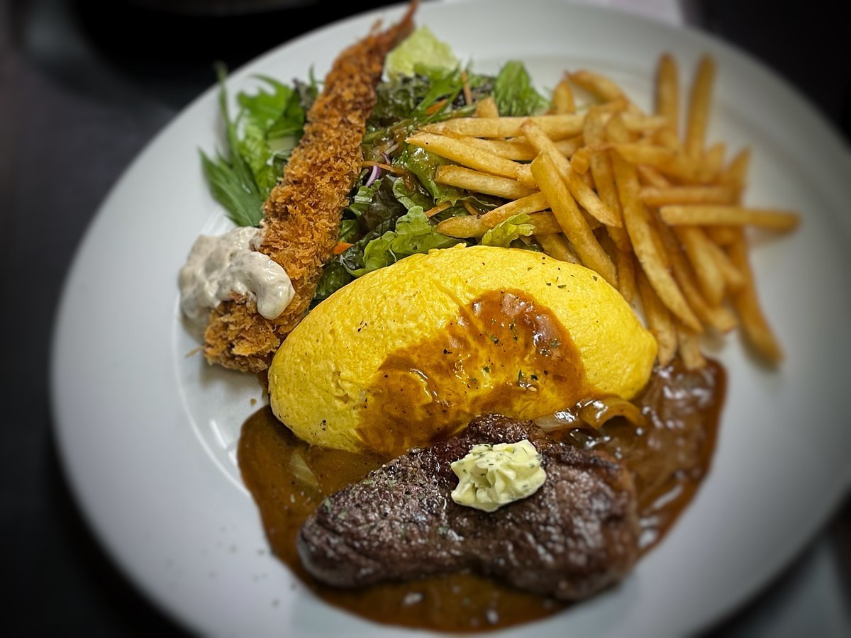 贅沢お子様ランチはミニステーキに大エビフライ!背伸びしたいお子様にばっちりわさだのオムライス\(//∇//)\