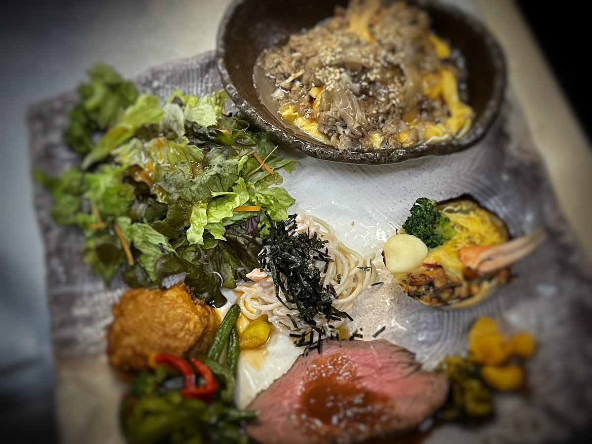 懐石風すき焼きオムライスはいろいろちょこちょこ乗ってる贅沢系わさだのオムライス\(//∇//)\