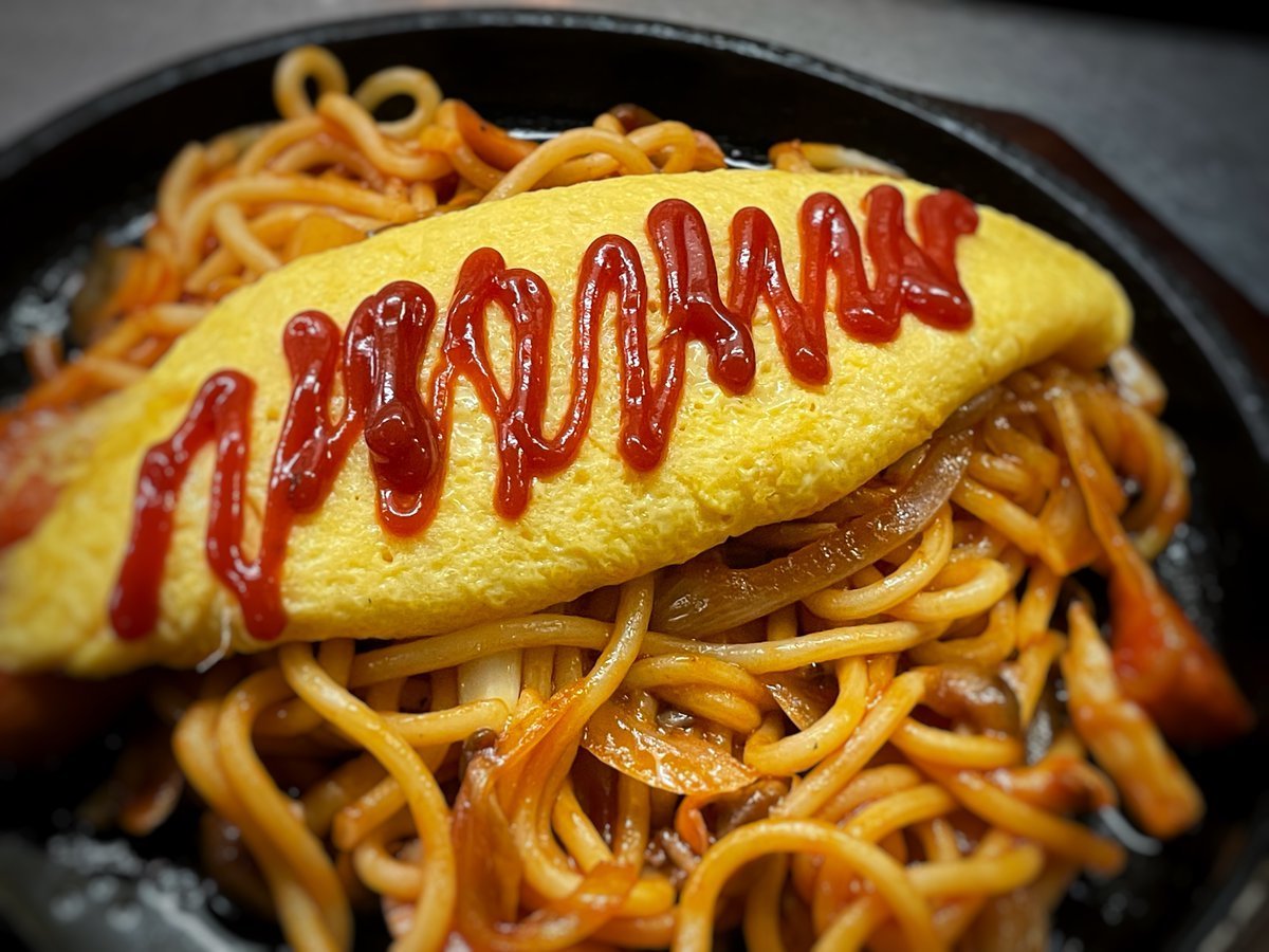 オムレツ乗ったナポリタン!太麺大満足わさだのメニュー\(//∇//)\