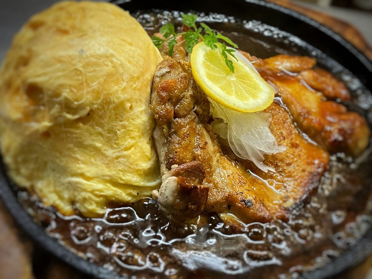 チキンレモンステーキはレモンの香りが爽やかなわさだの鉄板オムライス\(//∇//)\