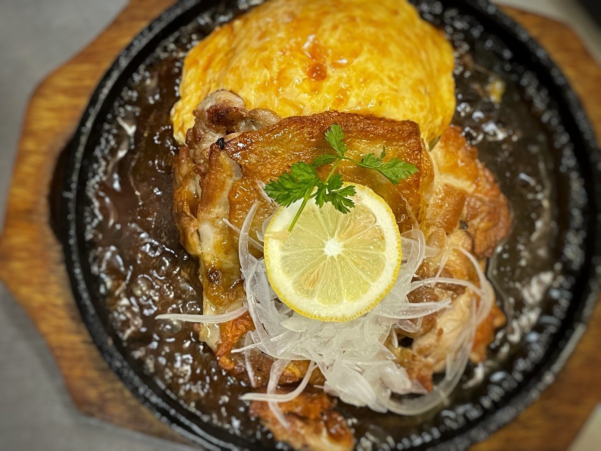 チキンレモンステーキは熱々鉄板の爽やかなわさだのオムライス\(//∇//)\