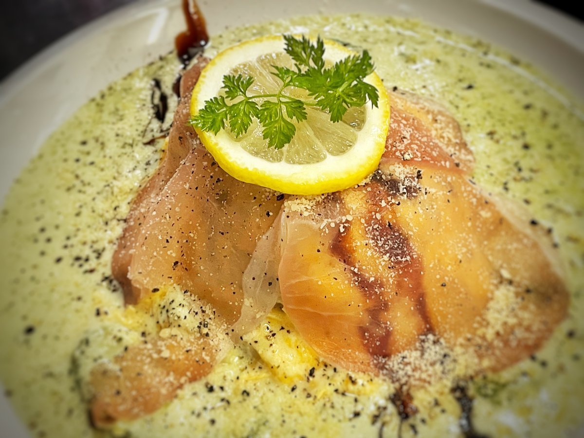 生ハムとバジルクリームのオムライスは爽やかな香りがするわさだのオムライス\(//∇//)\