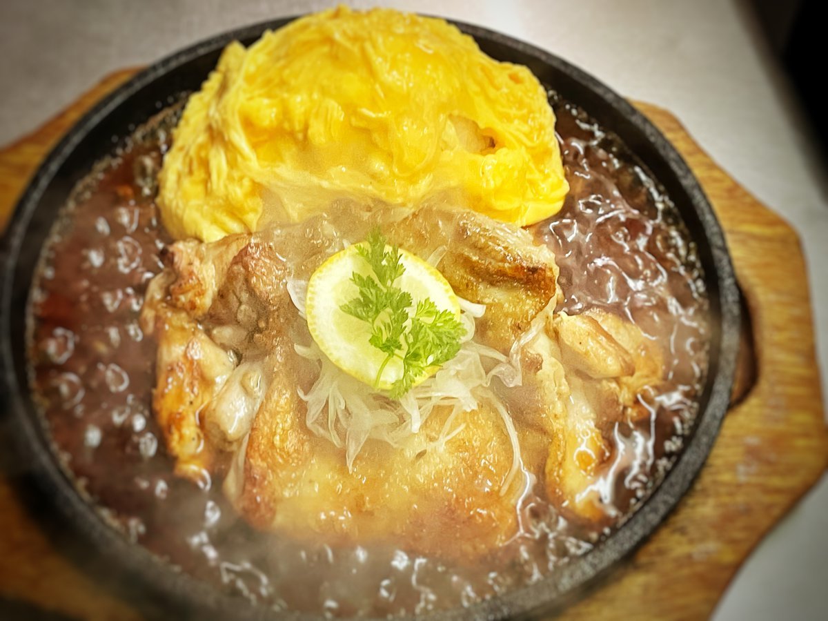 チキンレモンステーキオムライスは爽やかレモンがおいしーわさだの鉄板オムライス\(//∇//)\