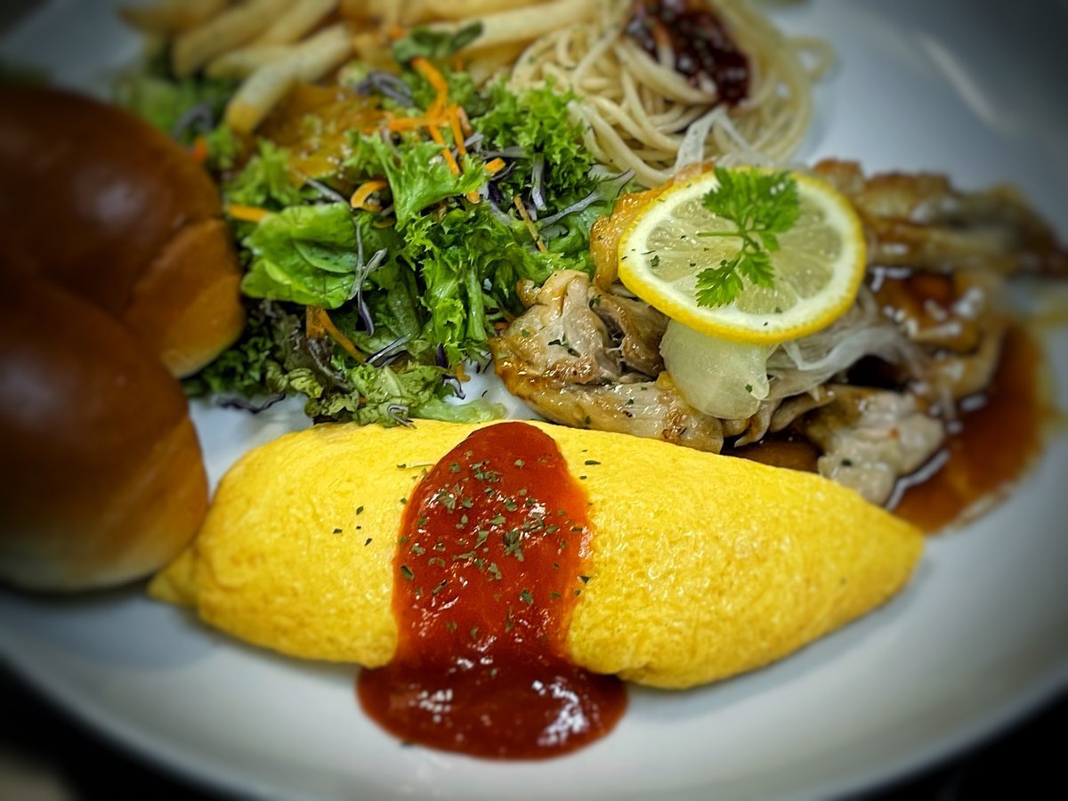 オムレツにパンにチキンレモン!いろいろ乗ったわさだのたのしーメニューです!\(//∇//)\