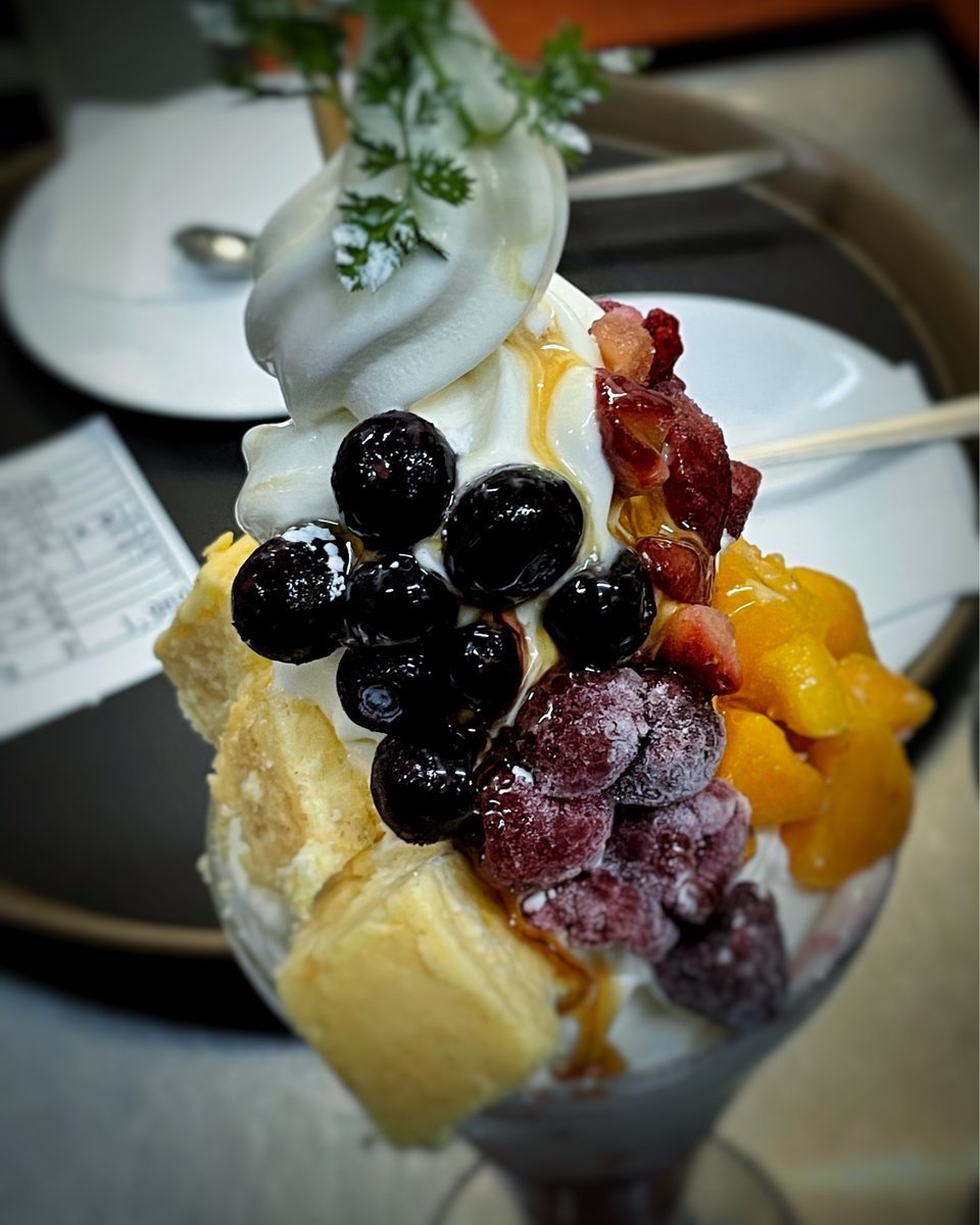 お盆で雨降りこんな日はパフェ食べてのんびりしましょー\(//∇//)\
