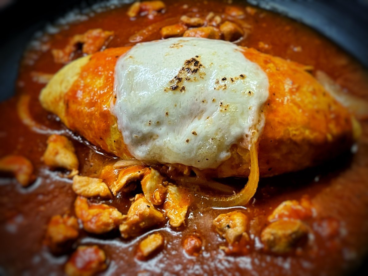 モッツアレラチーズがのびーる!チキントマトオムライスはチーズ大好きな人におすすめ!\(//∇//)\
