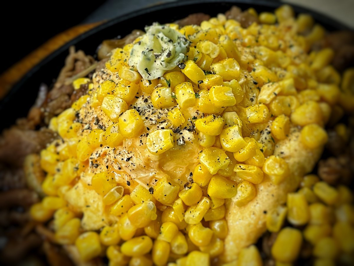 コーンたっぷり!ビーフペッパーオムライスはわさだの大人気鉄板オムライス\(//∇//)\
