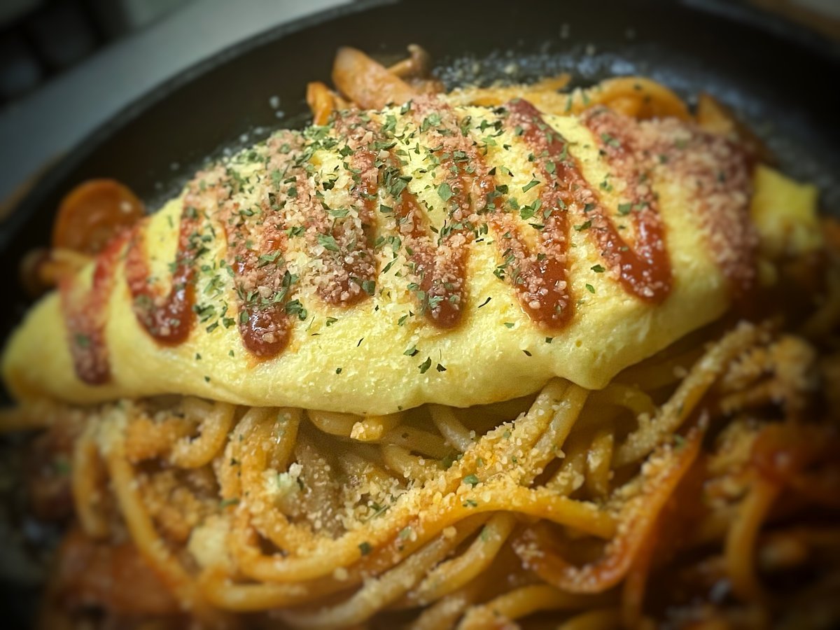 オムレツ乗ったナポリタン!ふわふわ卵とナポリタンはめちゃテンションあがります!\(//∇//)\