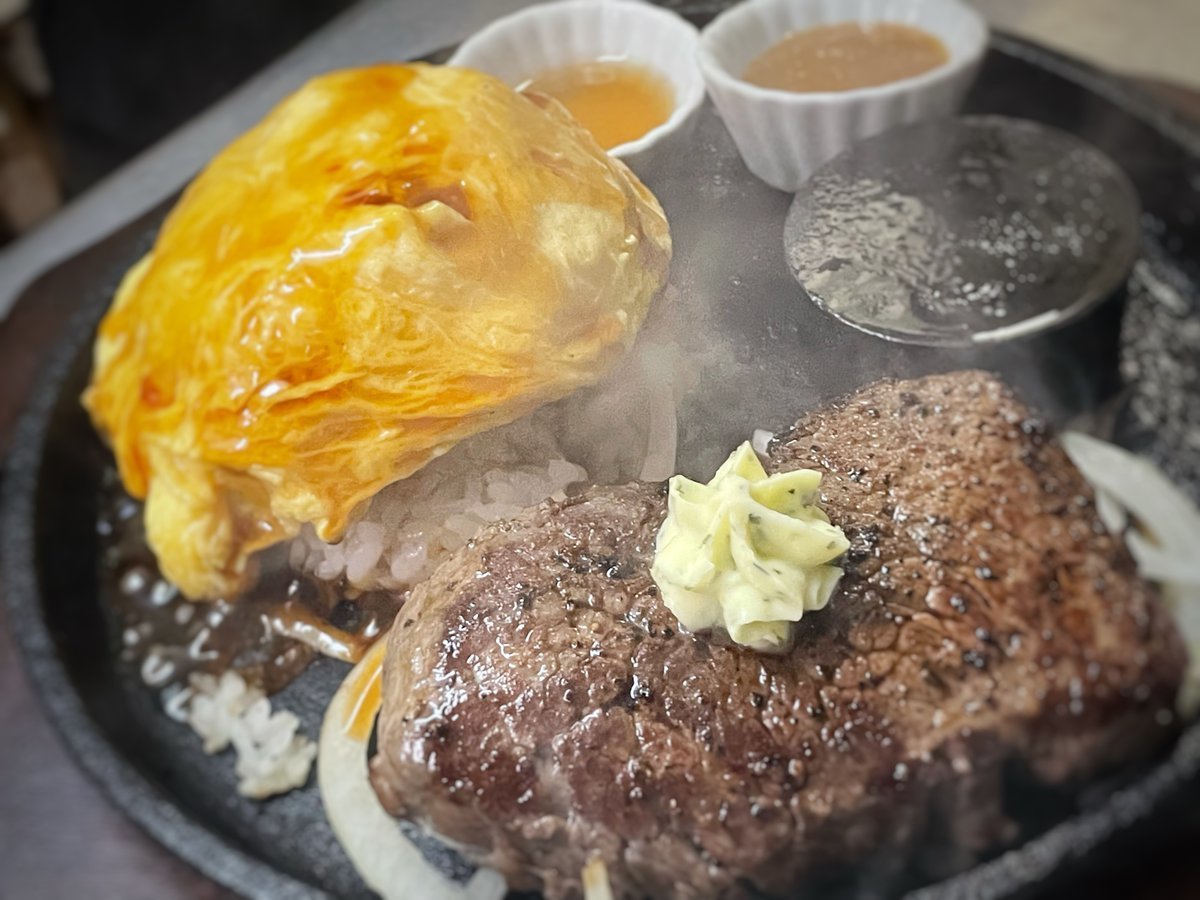 Dish全店熱々鉄板ステーキオムライスご用意してます!\(//∇//)\
