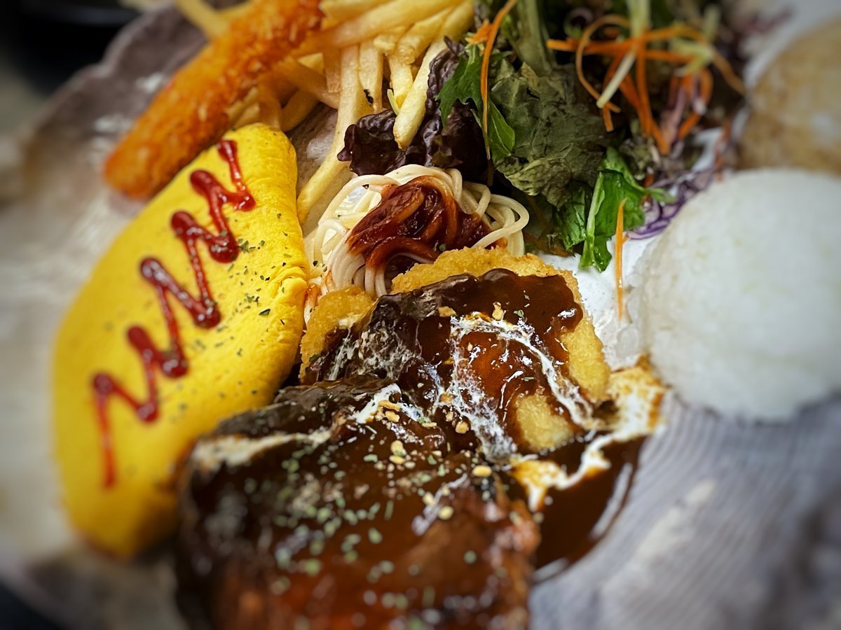 ハンバーグにオムレツにチキンカツと洋食いろいろ乗った洋食懐石プレートはわさだのワンプレート!ワンプレートと言えばわさだ店ですー\(//∇//)\