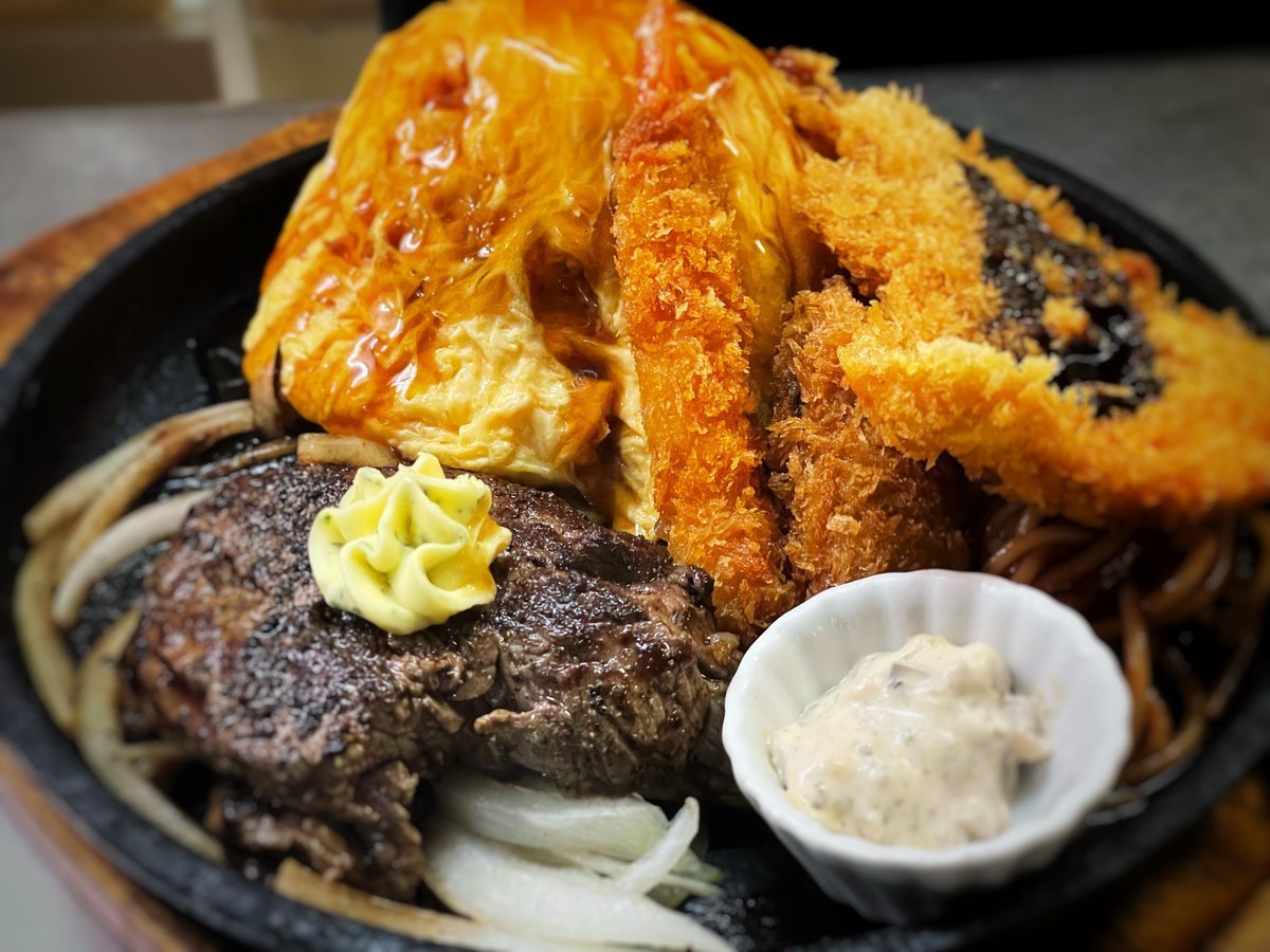 大人のお子様ランチは鉄板熱々いろいろ乗ったわさだのメニュー\(//∇//)\