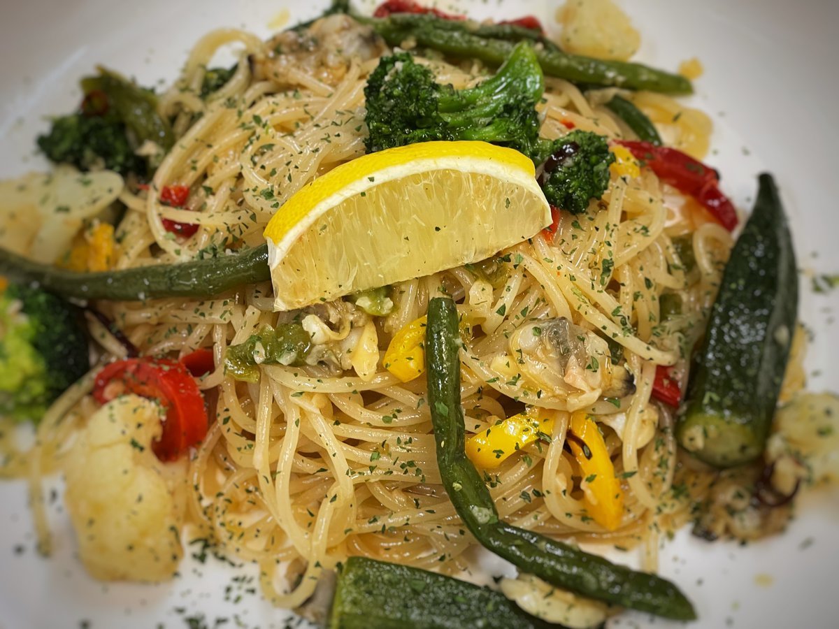 あさりと彩り野菜のペペロンチーノはわさだの新メニュー!パスタ初めてます!\(//∇//)\