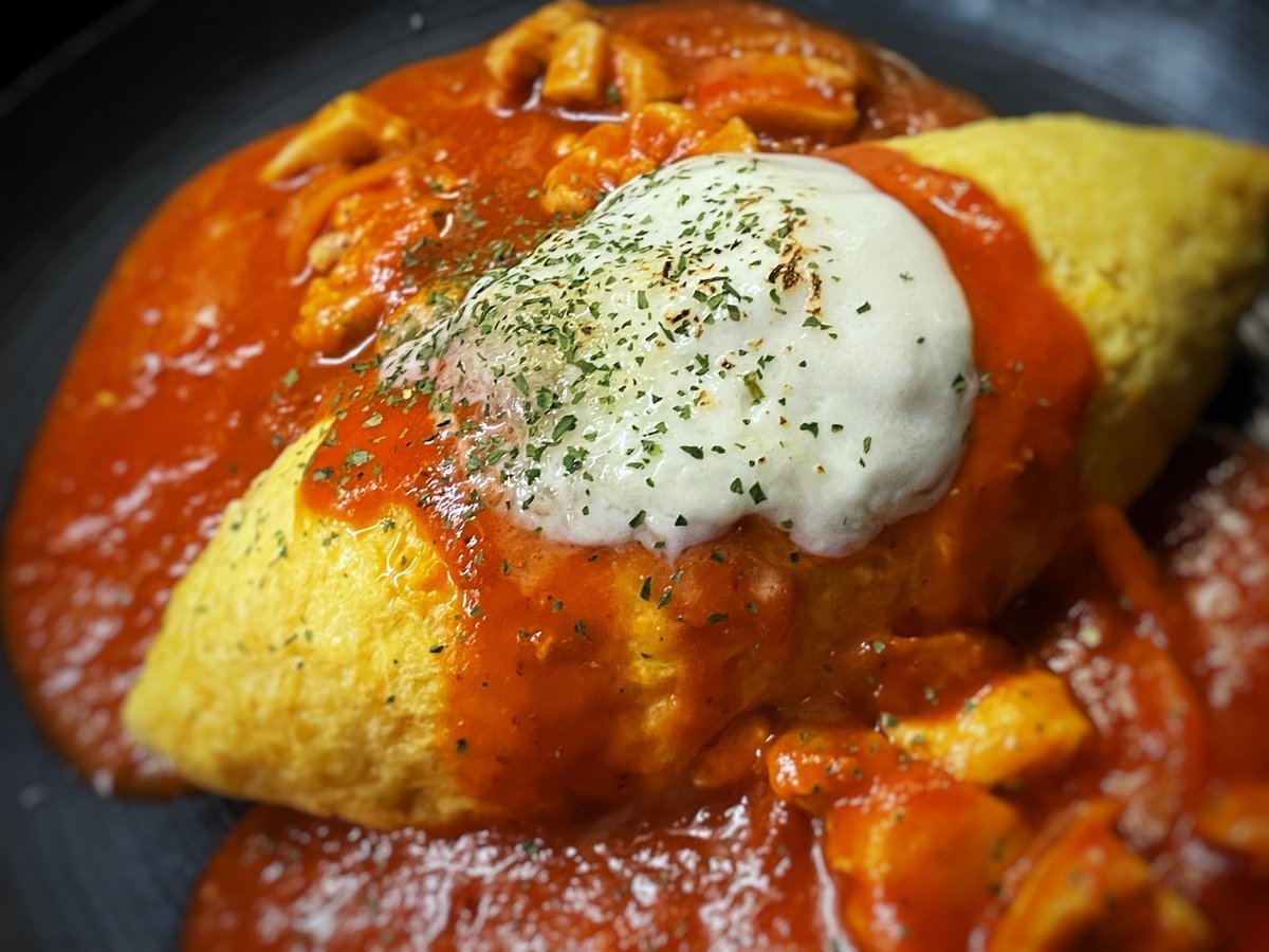 モッツアレラチーズがのびーる!チキントマトオムライス!チーズ好きにはたまりません!\(//∇//)\