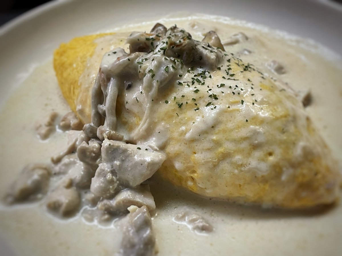 チキンクリームのオムライスはクリーム好きに大人気!わさだのメニューです!\(//∇//)\