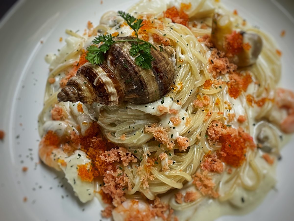 魚介のクリームパスタはわさだ店のパスタ人気メニュー!大好評なのです!\(//∇//)\