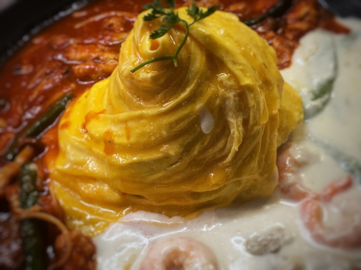 春野菜のダブルソースドレスオムライスはわさだの春限定メニュー!\(//∇//)\