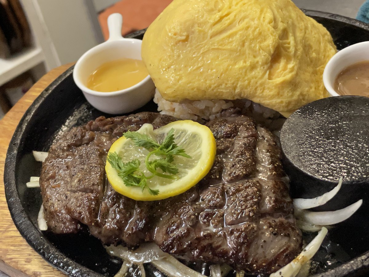 厚切りカルビステーキはわさだの鉄板オムライス!\(//∇//)\