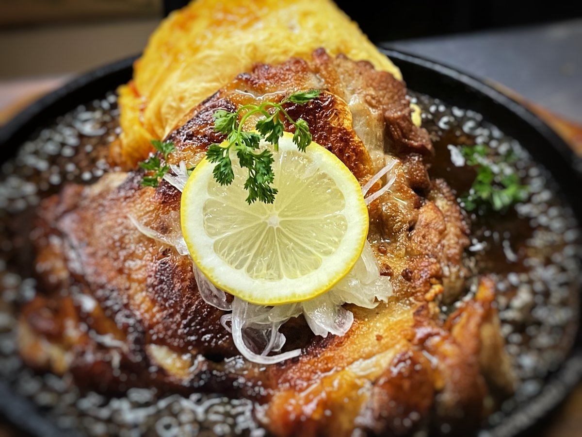 皮目がカリッとしたレモンチキンのオムライスはわさだの鉄板メニュー\(//∇//)\