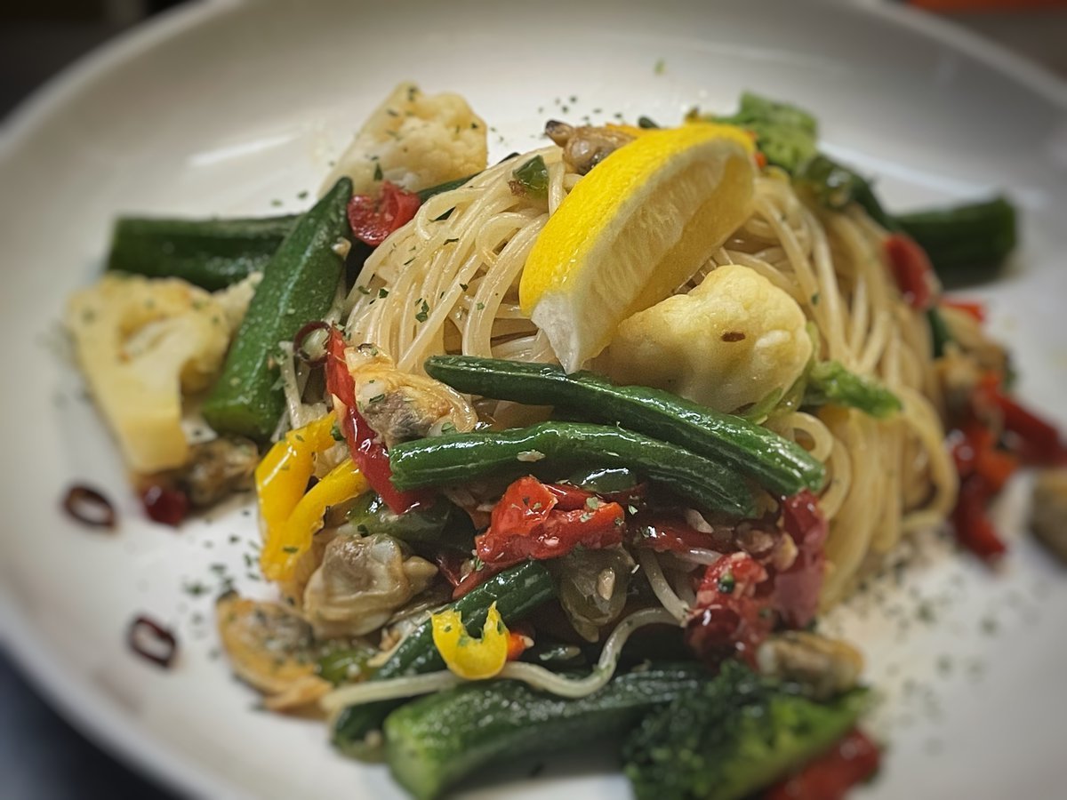 あさりと野菜のペペロンチーノはわさだの人気なパスタです!\(//∇//)\