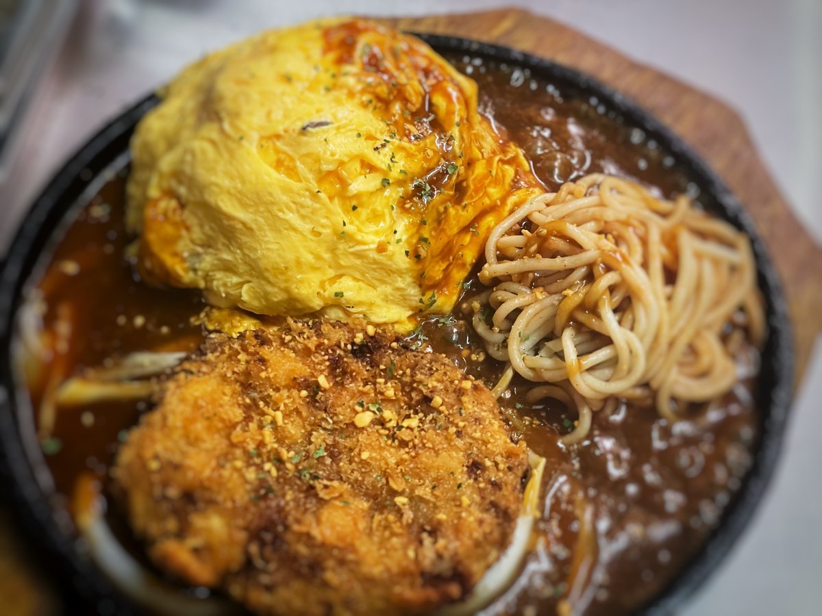 メンチカツの鉄板オムライスはガッツリ系わさだのオムライス\(//∇//)\