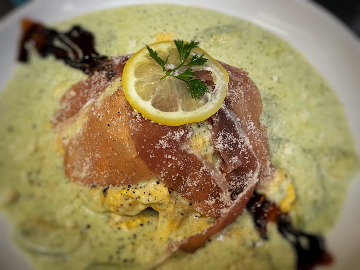 生ハムとアボカドのバジルクリームオムライスはわさだの女子人気オムライス\(//∇//)\