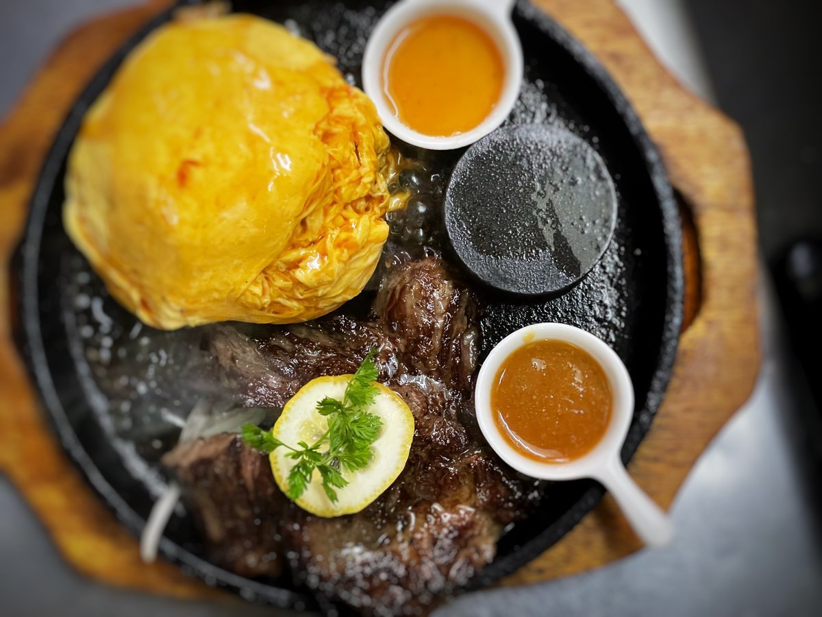 厚切りカルビステーキの鉄板オムライス!肉は全てを解決します!わさだのお肉メニュー\(//∇//)\