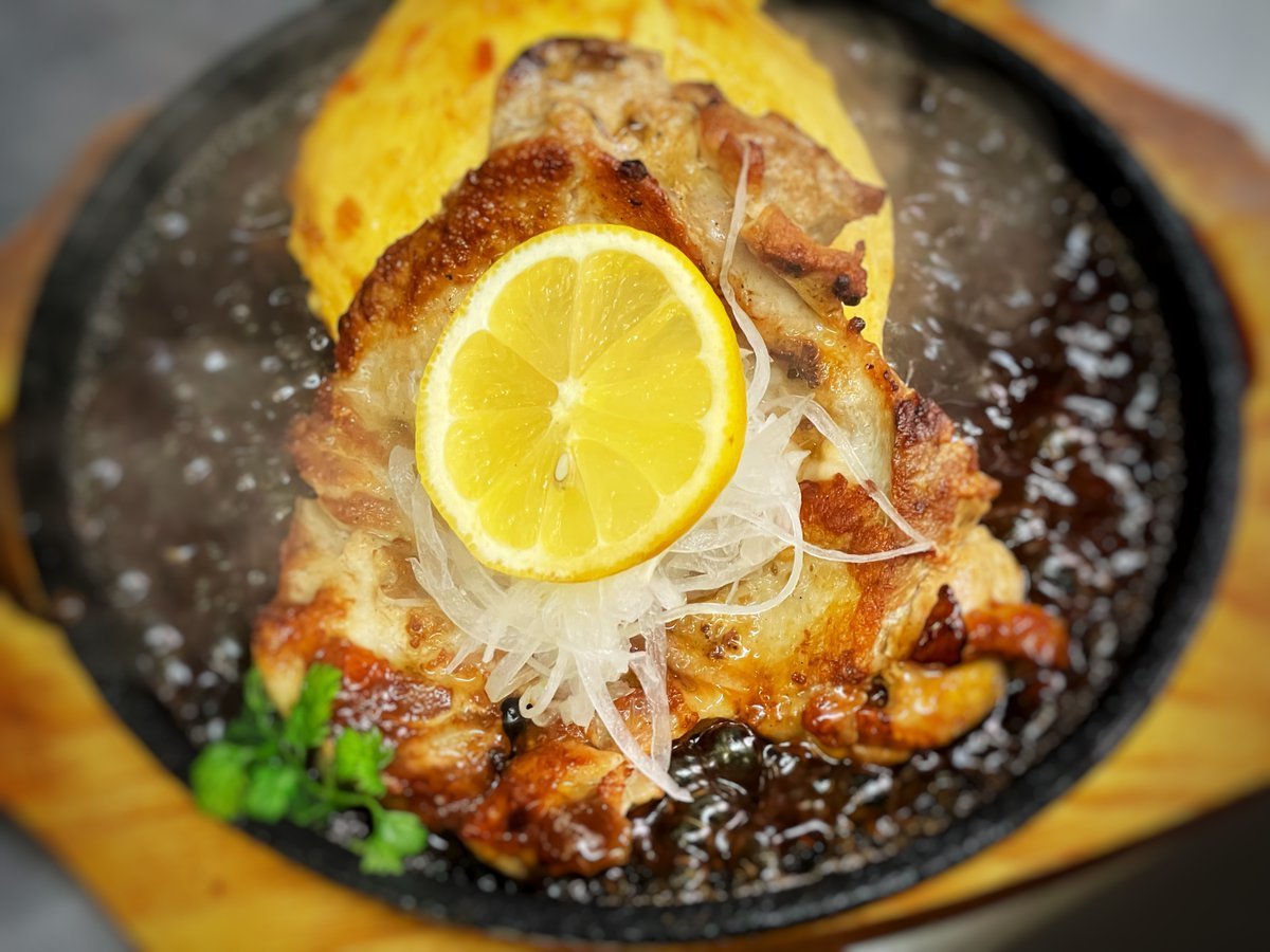 カリッとした皮目がおいしーチキンレモンの鉄板オムライスはわさだのメニュー\(//∇//)\