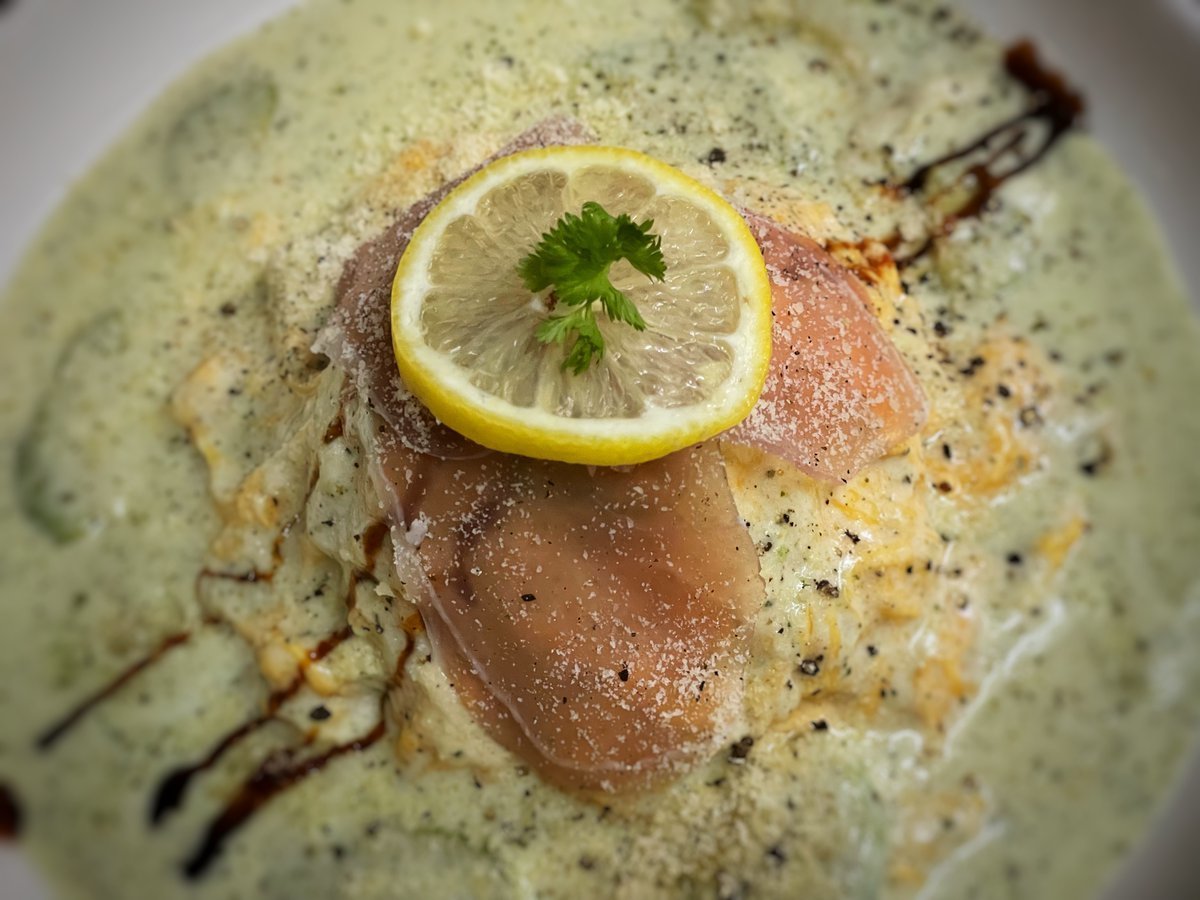 生ハムとバジルクリームのオムライスはわさだの女子人気オムライス\(//∇//)\