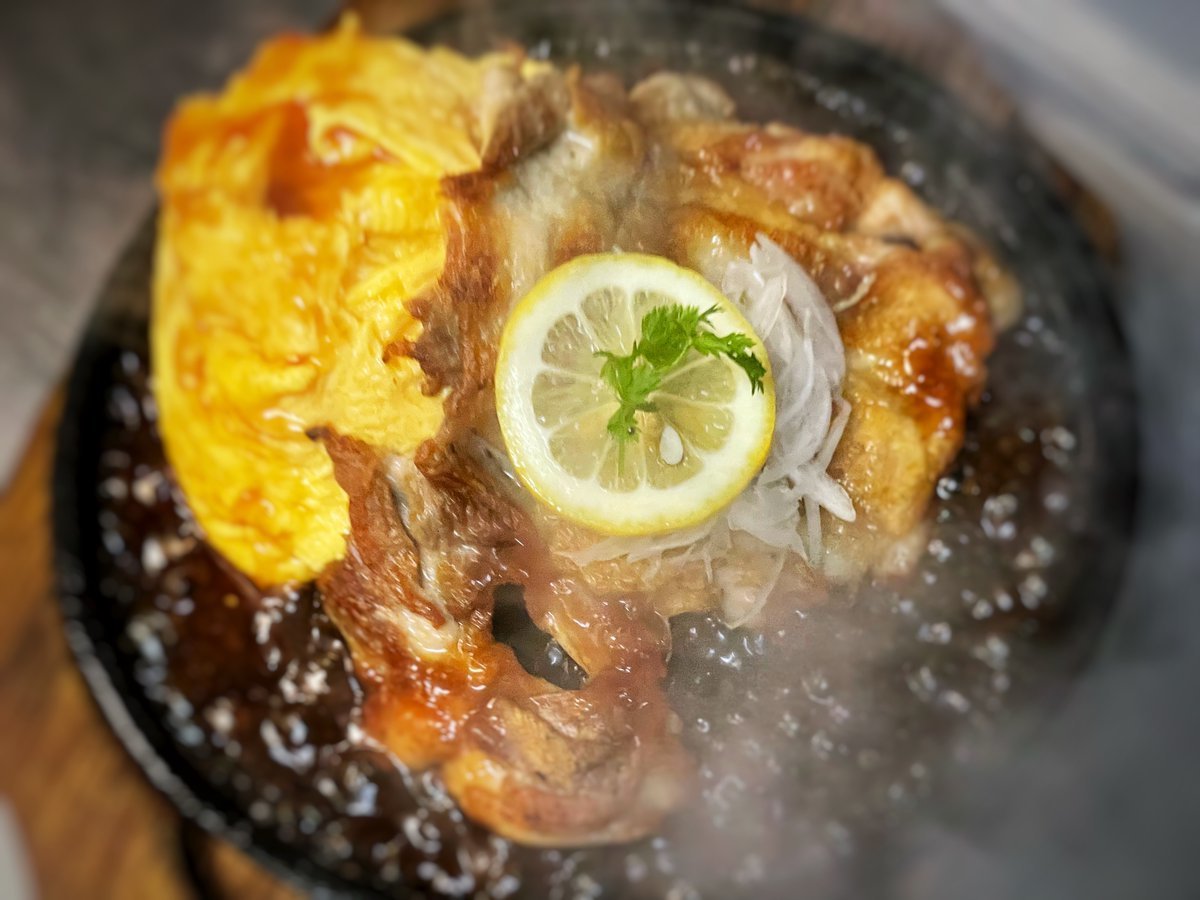 チキンレモンステーキのオムライスはレモンの酸味が食欲そそるわさだの鉄板オムライス\(//∇//)\