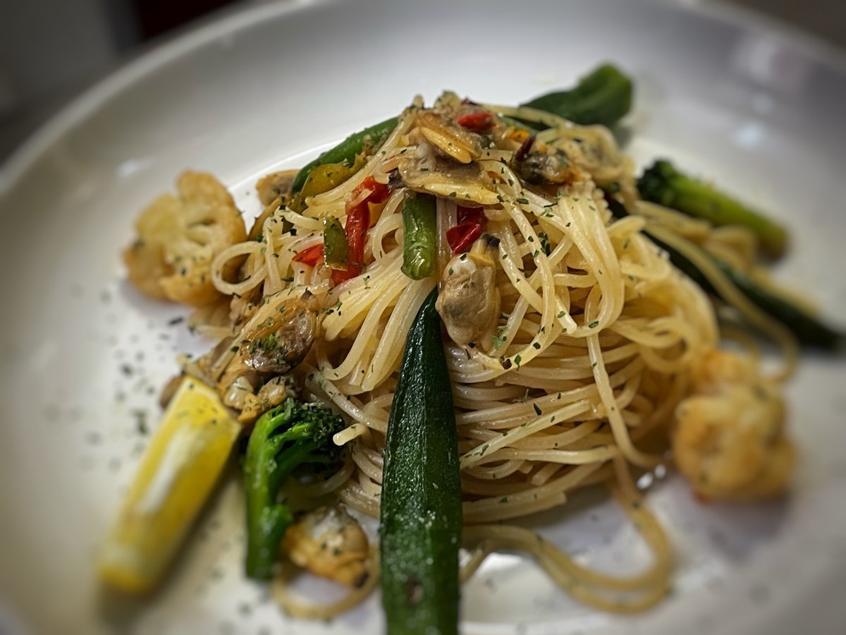 あさりと野菜のペペロンチーノはわさだの女子人気パスタ!お野菜たっぷりがいいですね!\(//∇//)\