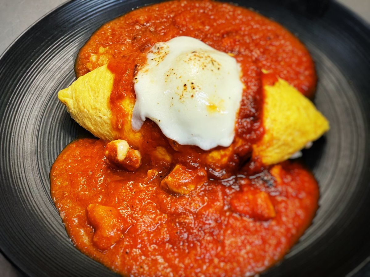 モッツアレラチーズがのびーる!トマトチキンオムライスはチーズ好きにはたまりません!\(//∇//)\