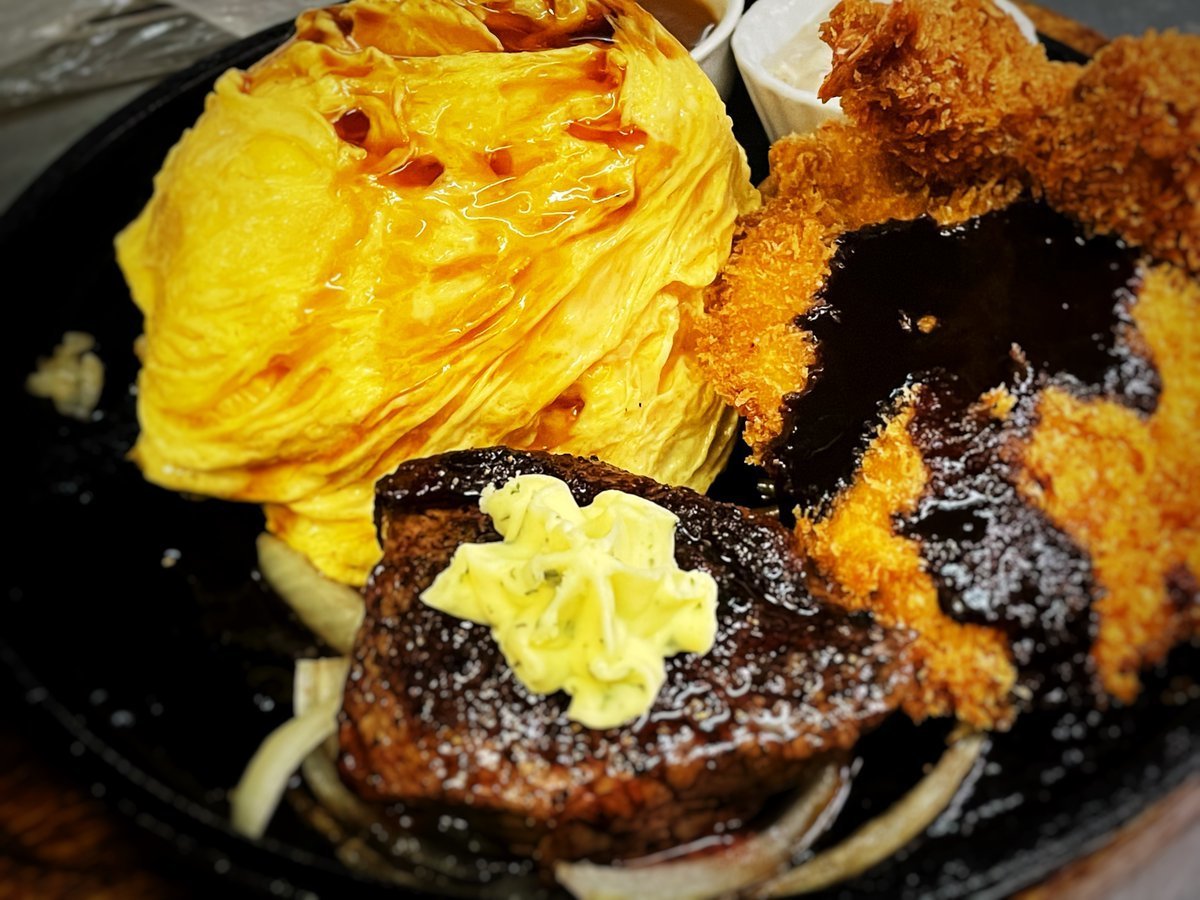 大人のお子様ランチはミニステーキにチキンカツにエビフライにカキフライとてんこ盛り!わさだのメニュー\(//∇//)\